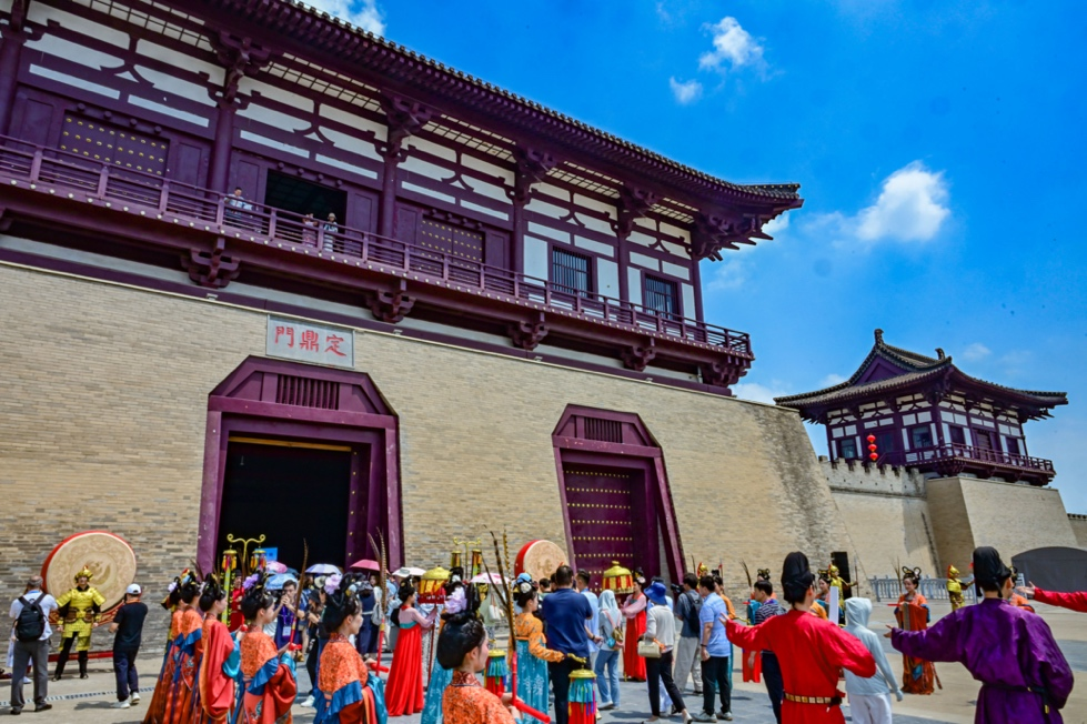 Dingding Gate stands majestic, having witnessed the distant years when camel bells echoed along the Silk Road and greeted the flourishing glory of the Sui and Tang Dynasties. Stepping into the Site Museum of Dingding Gate, a magnificent reenactment of the “city entrance ceremony” instantly transported them through history. As performers bowed deeply, their Hanfu robes swirling, the guests marveled at the millennia-old elegance of the cross-handed salute, remarking they had never witnessed such graceful etiquette.